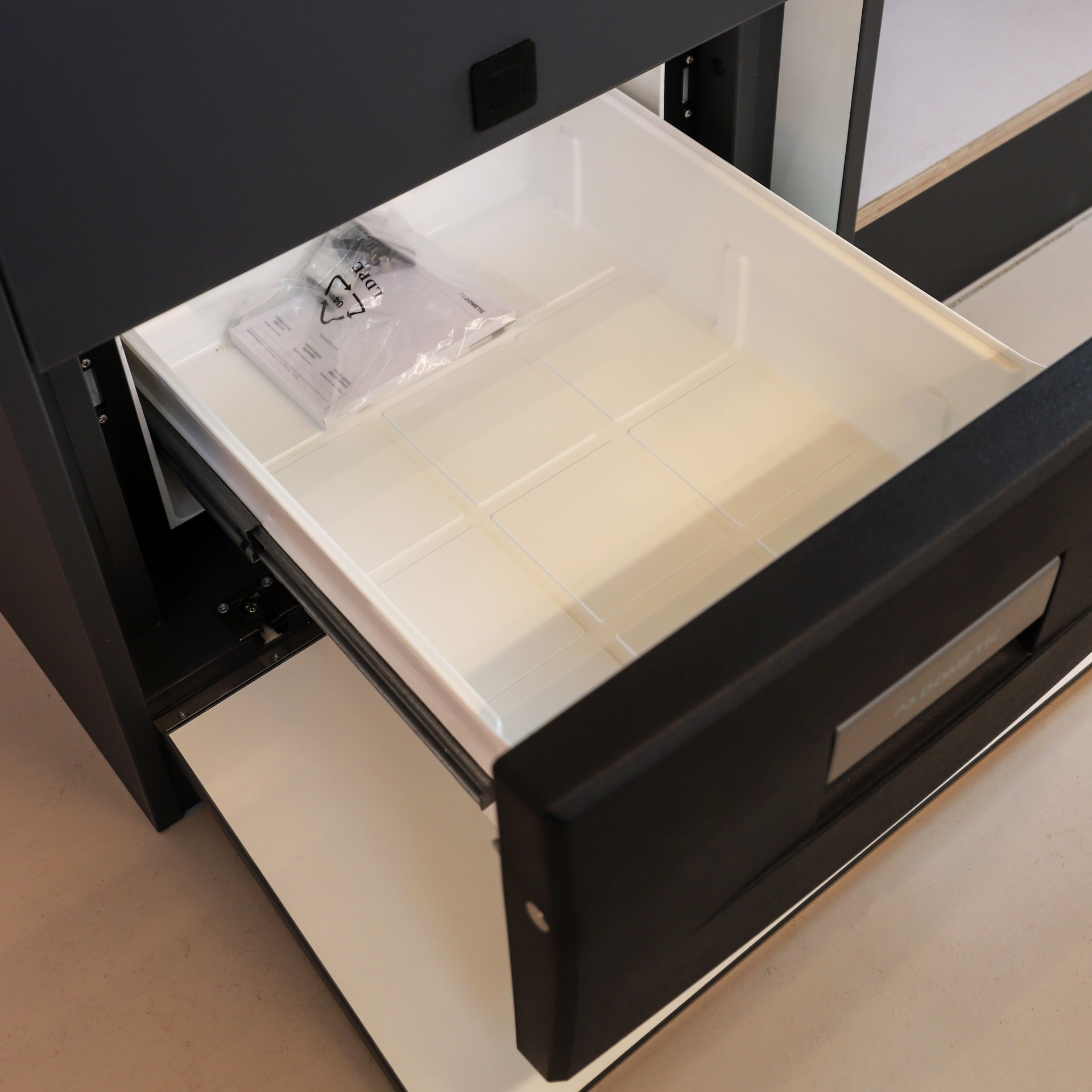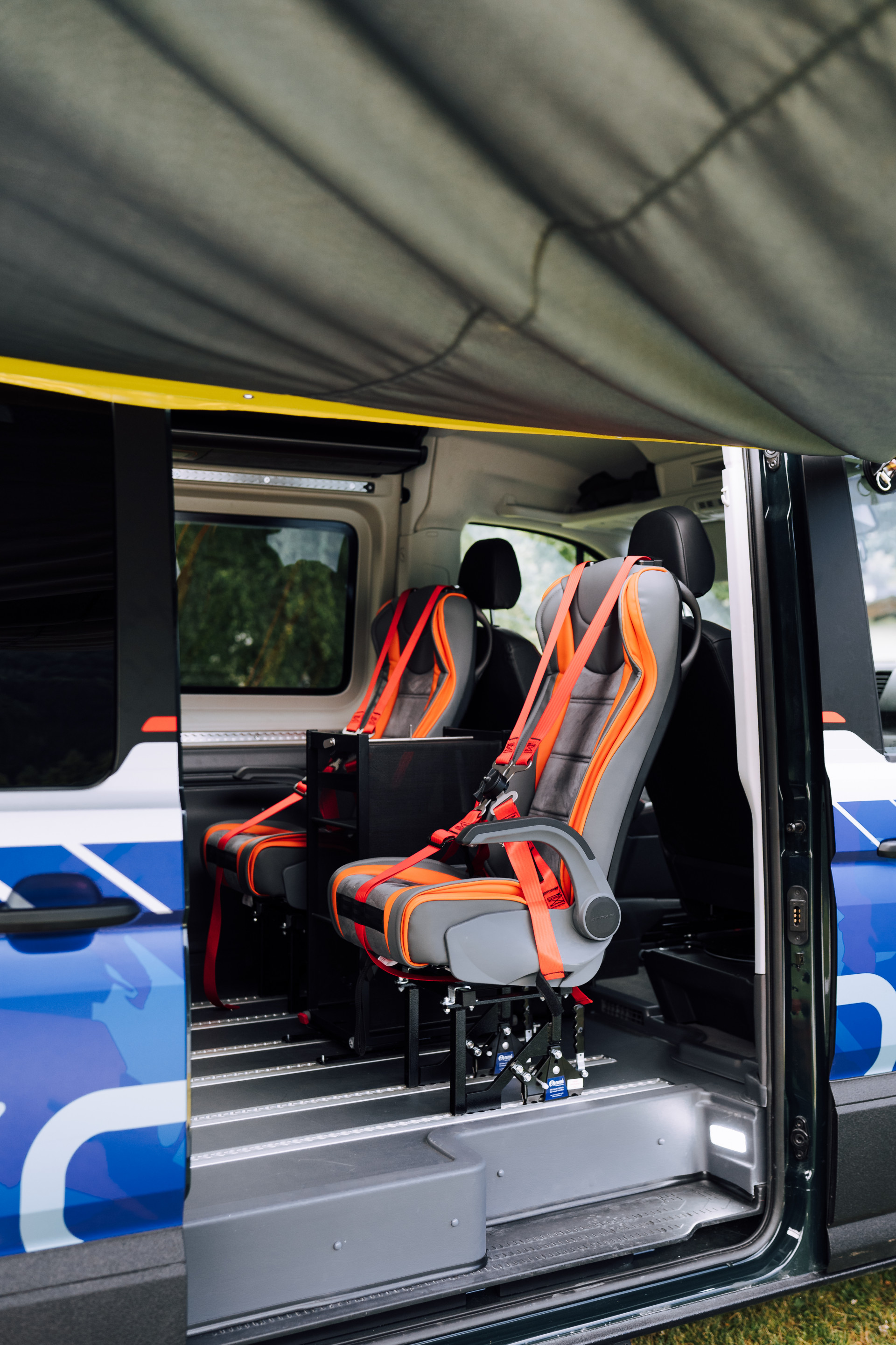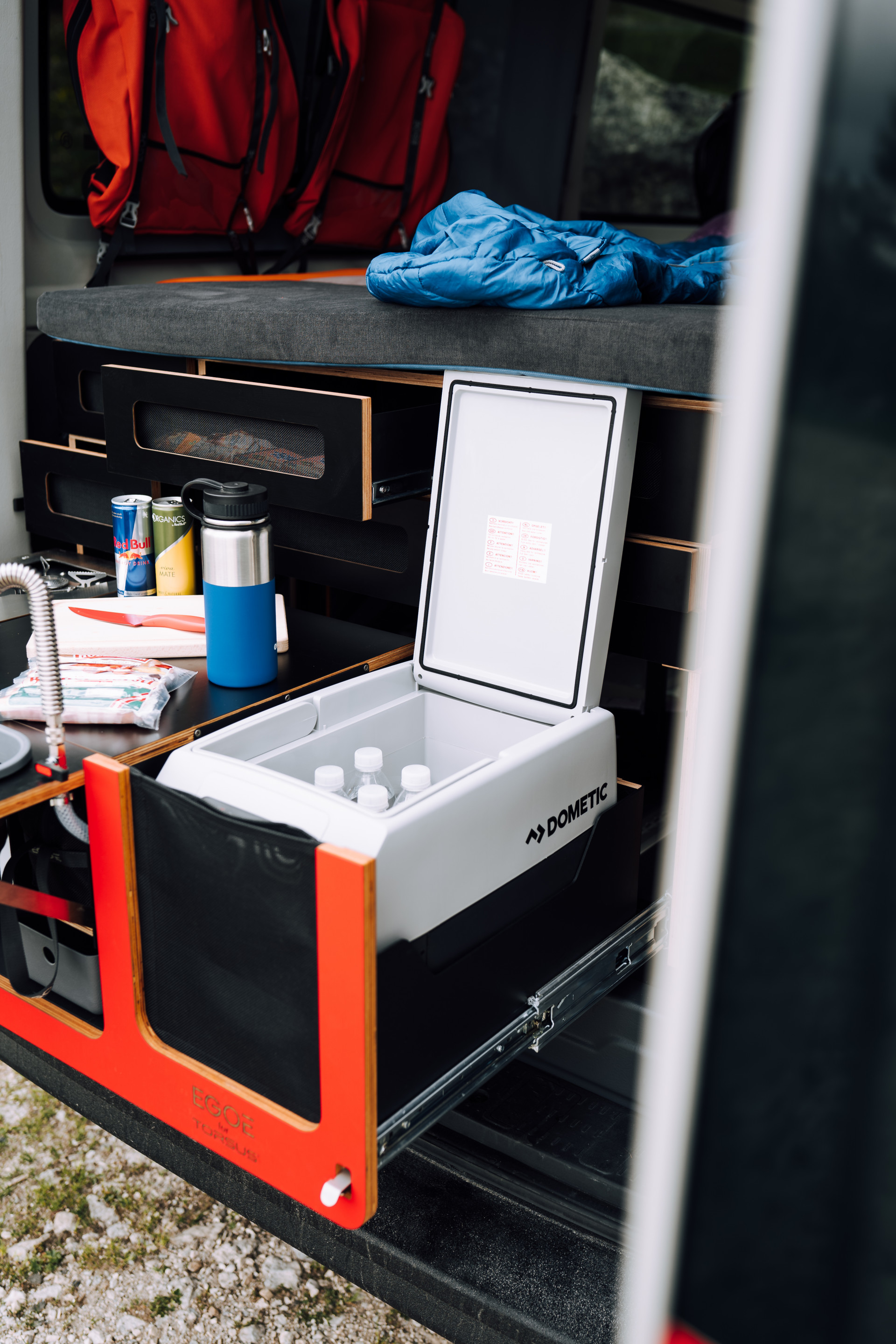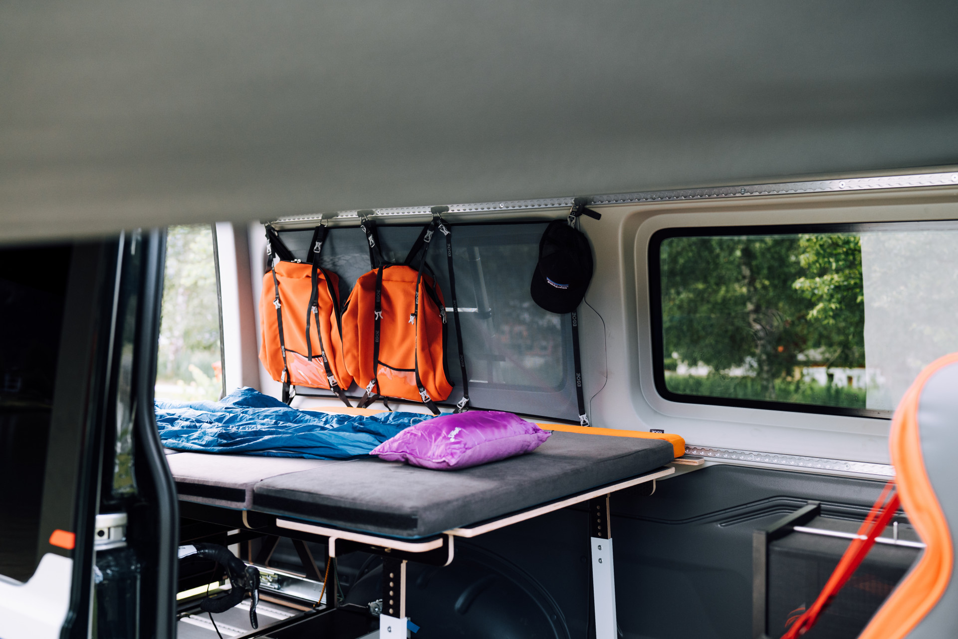 Das Besondere: Die Nestbox von Egoe. Ein raffiniertes Küchenmodul mit Kühlschrank, Kochfläche, Spüle und Stauraum, das sich komplett aus dem Heck herausziehen lässt. Hinzu kommt ein ausklappbares Bettmodul für zwei Personen, eine optional anbringbare Markise und Outdoor-Mobiliar. Alles, was man braucht, um Tage – oder Wochen – autark im Freien zu leben. Und das für einen Einstiegspreis von 130.000 Euro.