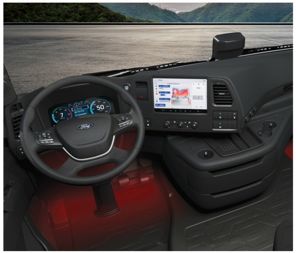 Auch im Cockpit hat Ford Trucks an den entscheidenden Stellschrauben gedreht. Anstelle klassischer Anzeigen erwartet den Fahrer nun ein 12-Zoll-Digitalinstrument in Kombination mit einem 12,4-Zoll-Multimedia-Display. Beide Systeme lassen sich individuell konfigurieren, sodass sich jeder Fahrer die Informationen nach seinen persönlichen Vorlieben darstellen kann.