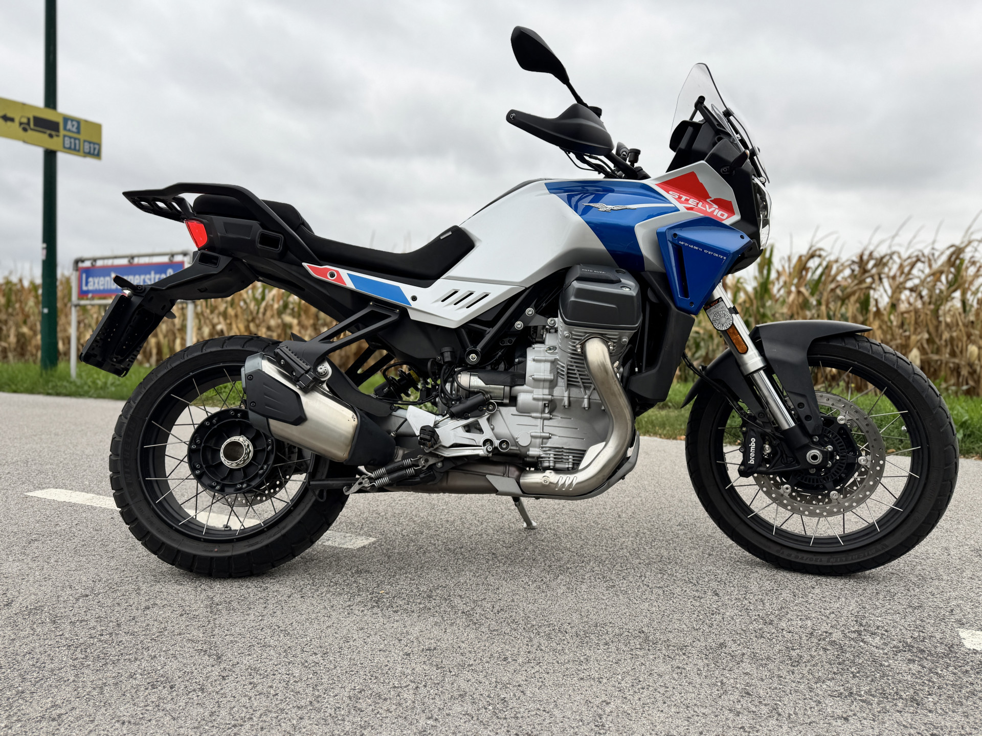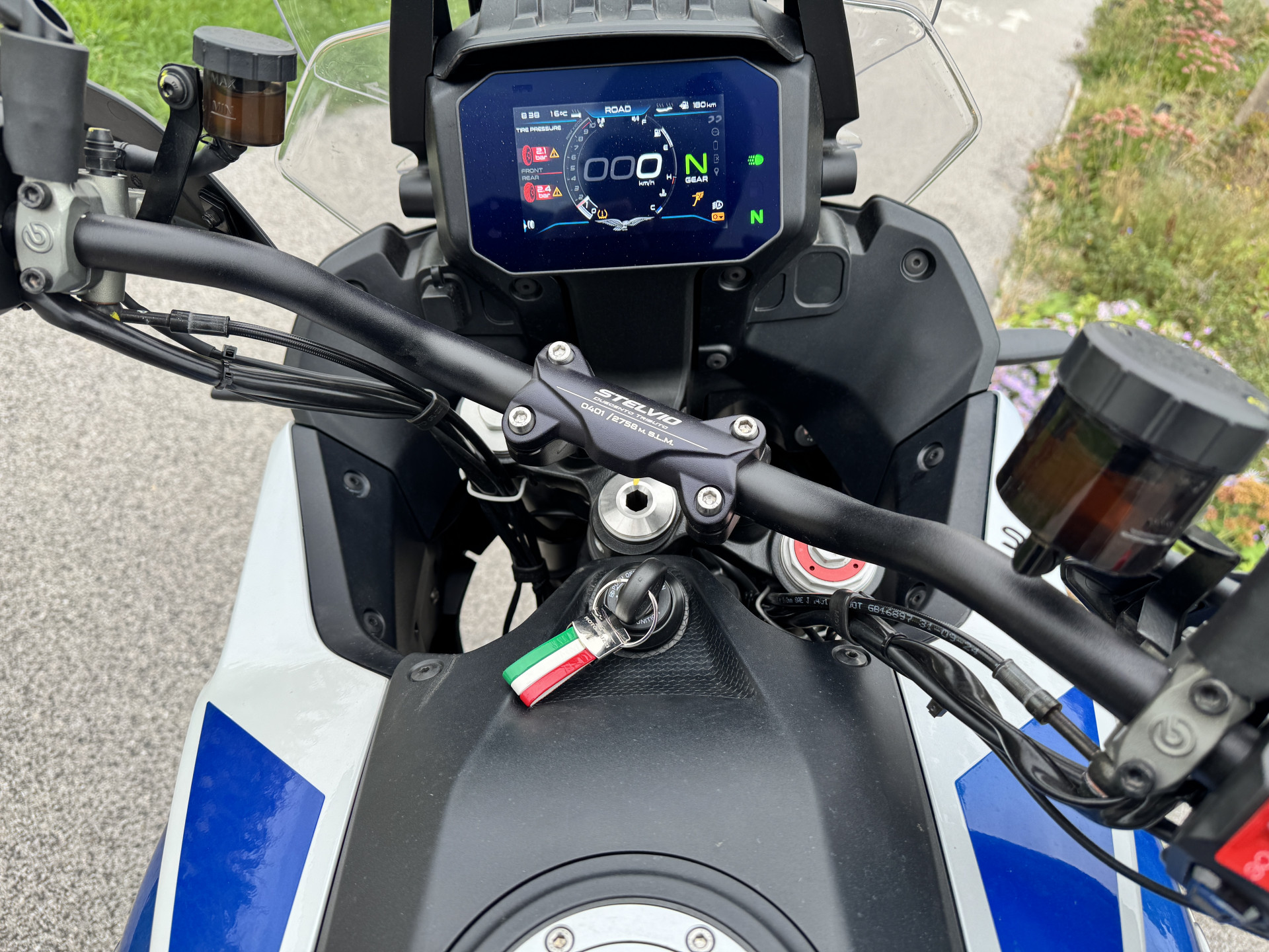 Das 5"-TFT-Display ist gestochen scharf, das neue Moto Guzzi MIA-System ermöglicht smarte Konnektivität mit Navi und Telefon, ohne den Fahrer mit Menü-Wahnsinn zu nerven. So bleibt die Stelvio ein klassisches, fahrerorientiertes Motorrad – aber mit allem, was man 2025 erwarten darf.