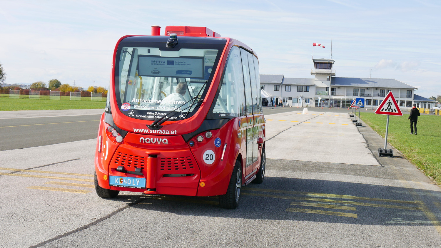 Ein Shuttle rollt lautlos über das Gelände des Flughafens. Kein Fahrer. Keine Lenkradbewegung. Aber klare Richtung. Was hier fährt, ist nicht irgendein Fahrzeug – es ist die Zukunft. Und diese Zukunft kommt aus Kärnten.