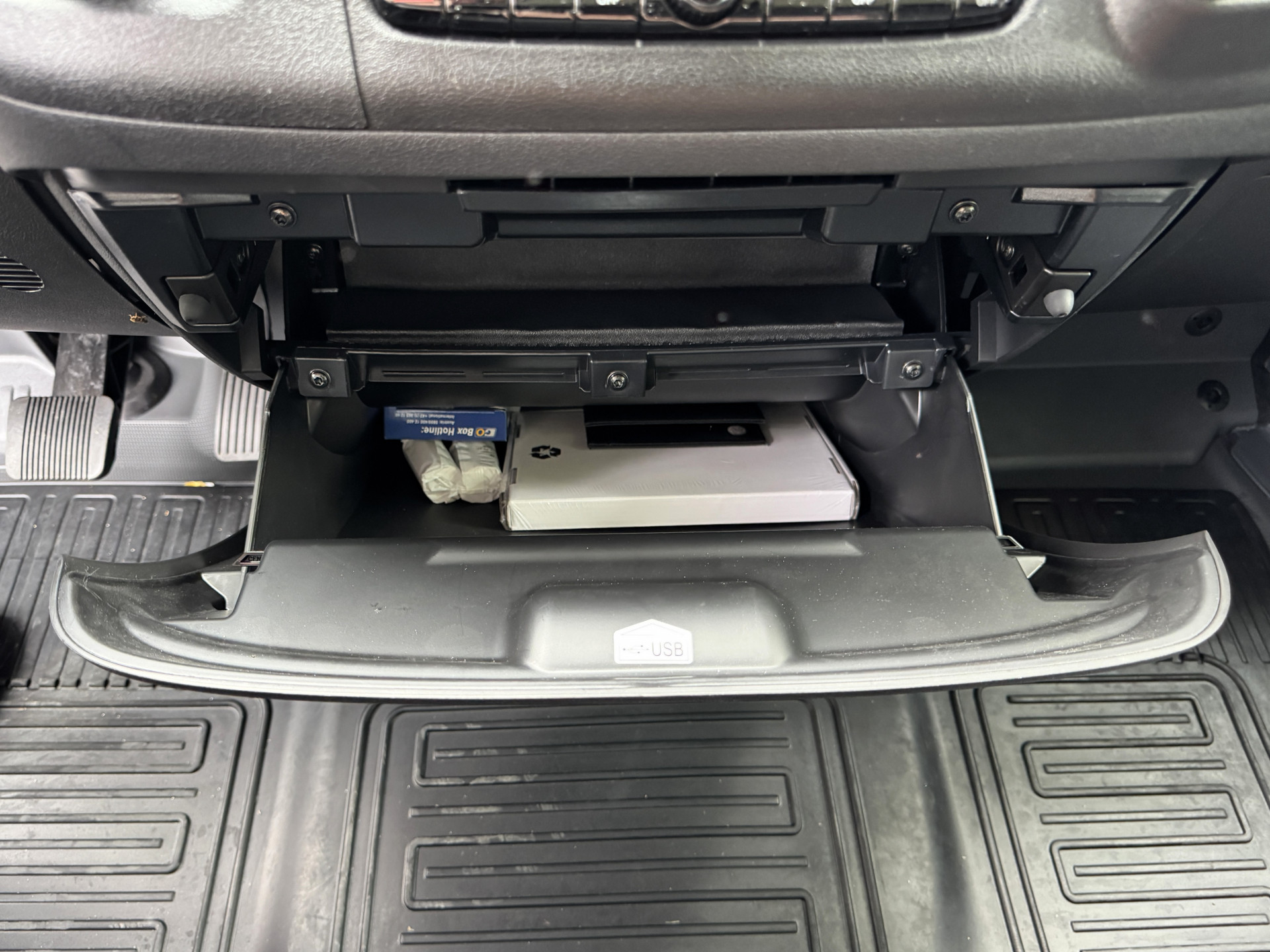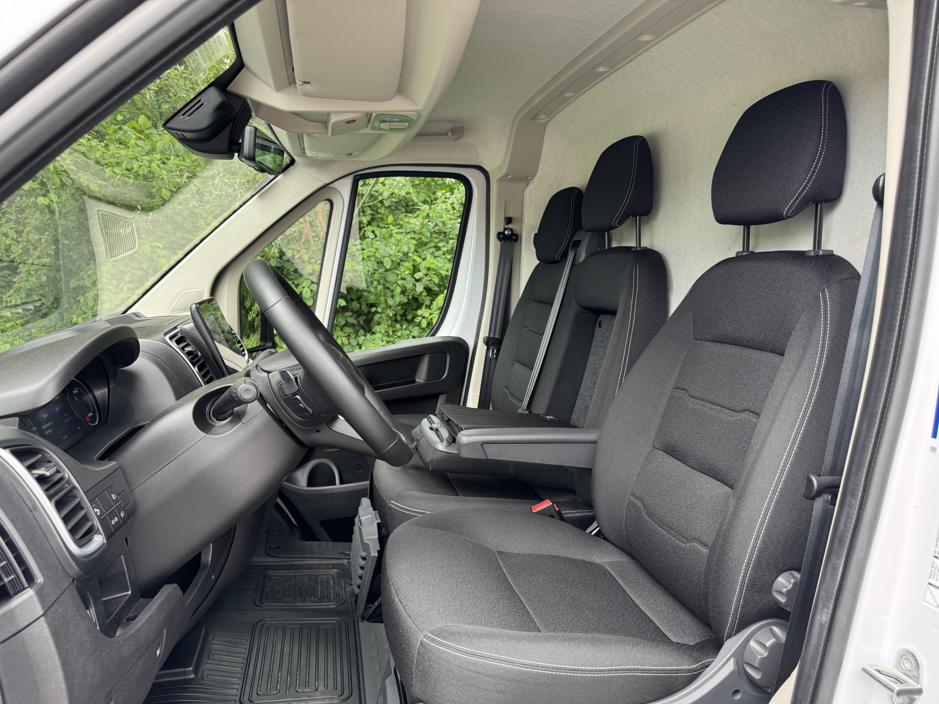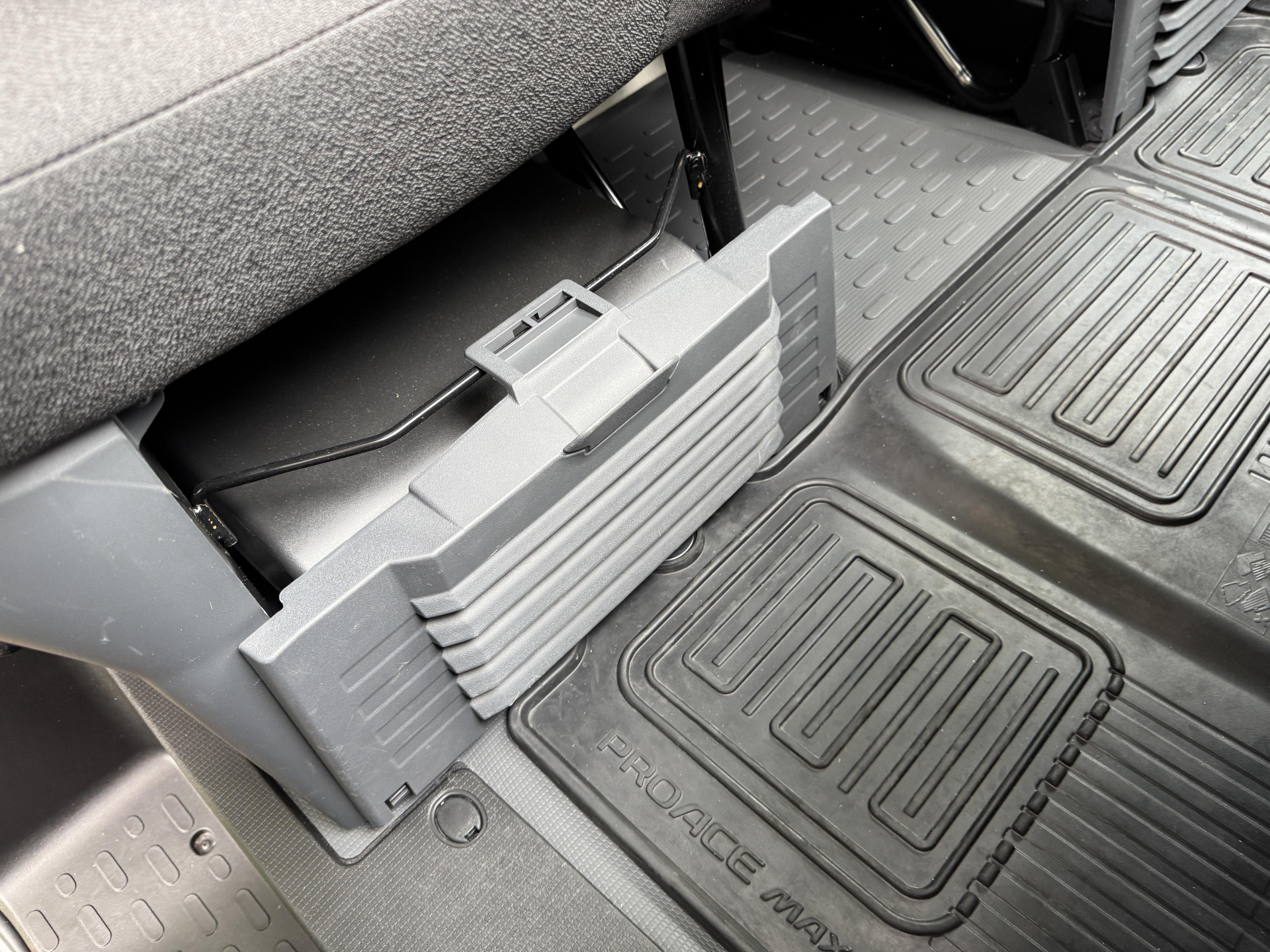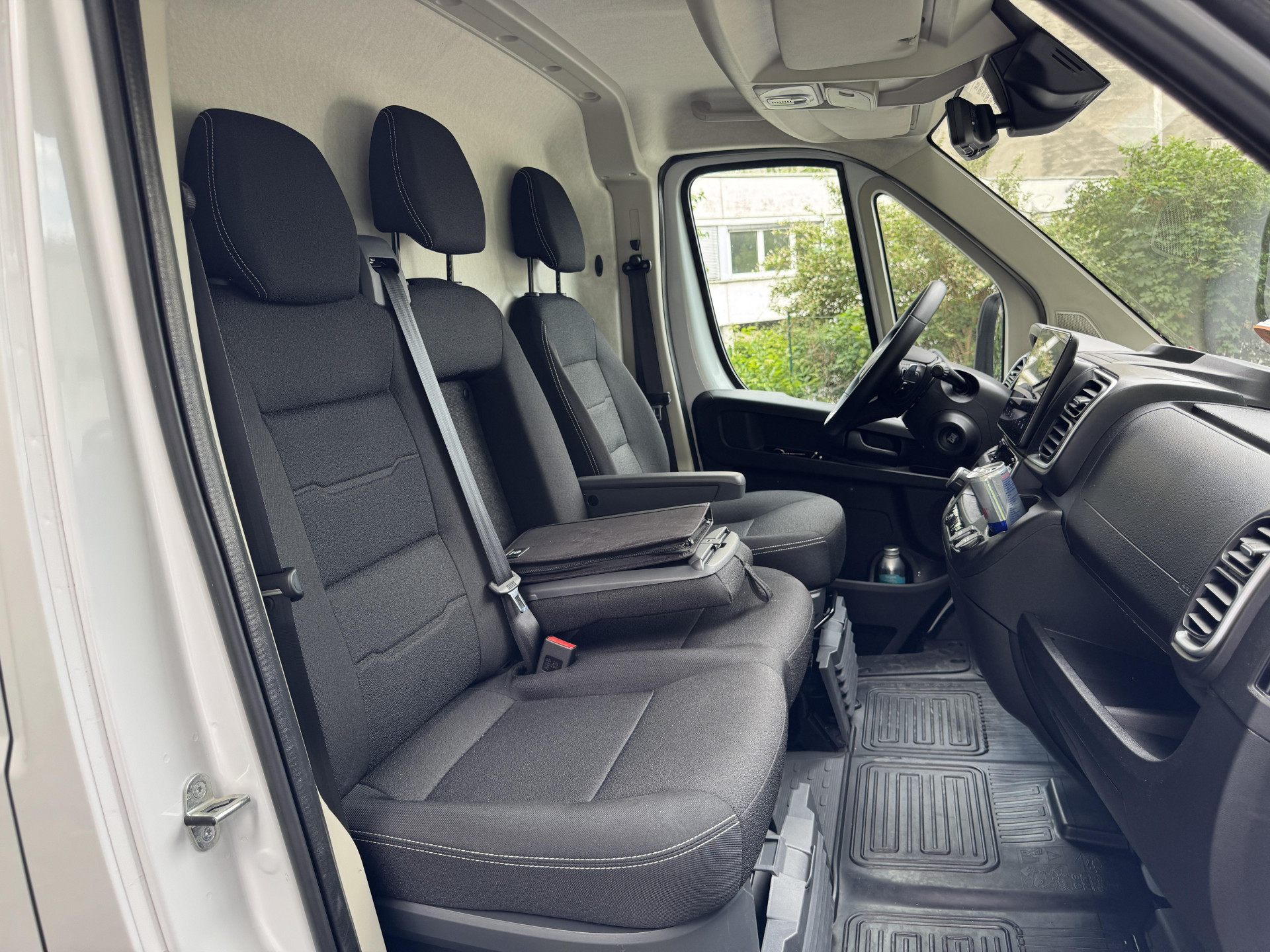 Immerhin gibt es die aus dem Mittelsitz herausklappbare große Arbeitsfläche für Unterlagen, Tablet oder Lieferscheine. Kritischer im Arbeitsalltag sind die wenig brauchbaren Getränkehalter: Lediglich in den Türen finden zwei 0,5 Liter Flaschen Platz. Becherhalter fehlen gänzlich.