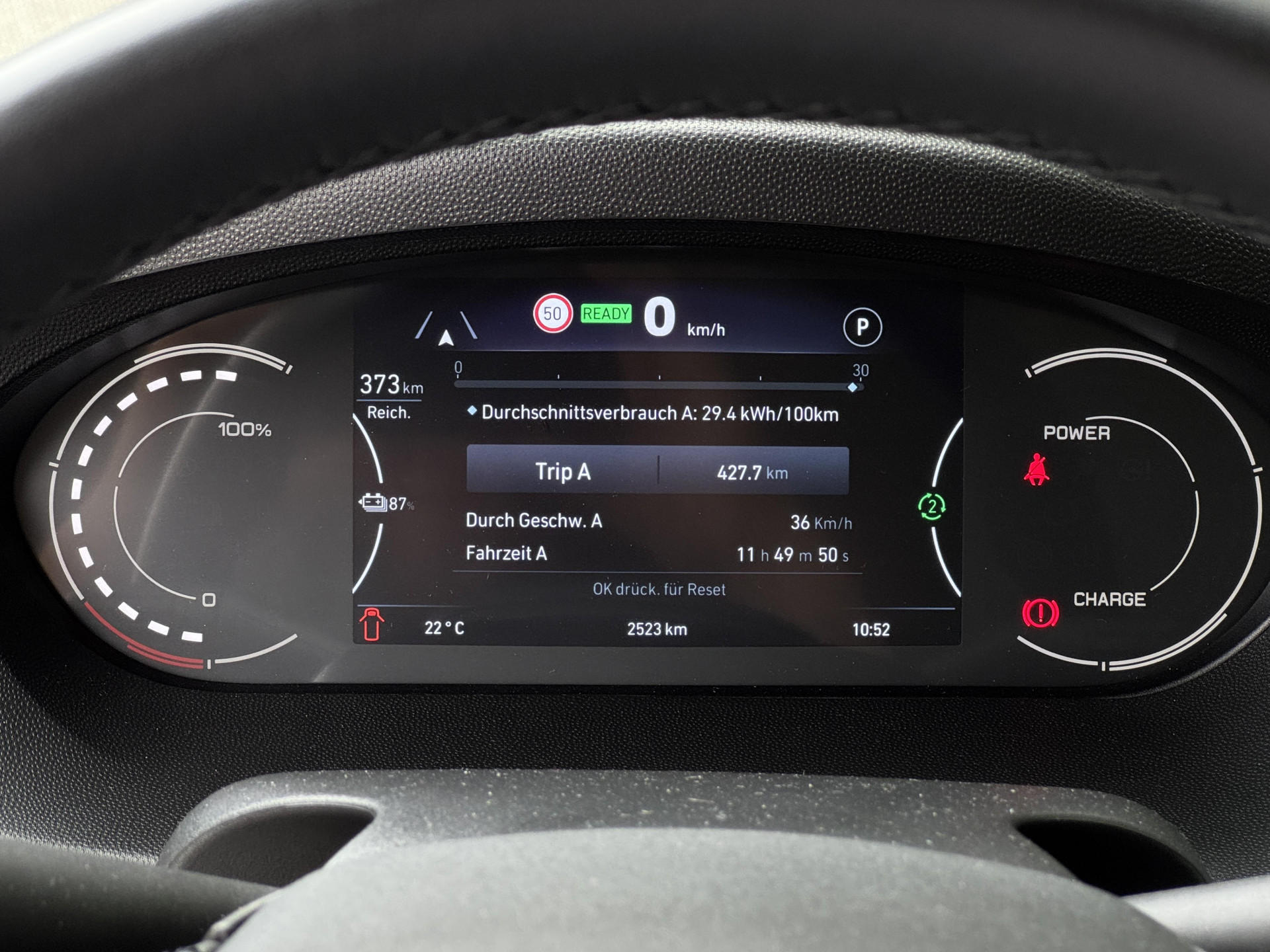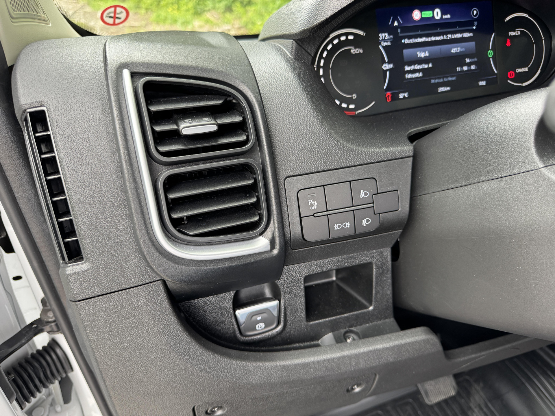 Mit einem Durchschnittsverbrauch von 29,4 kWh/100 Kilometer bewegen wir den Testwagen im WLTP-Fenster für den Proace Max Electric. Die elektrische Reichweite liegt damit bei rund 370 Kilometern. In der Praxis eines 4,25-Tonners relativiert sich das, wie immer: Leer oder leicht beladen, überwiegend Landstraße, sind Reichweiten um die 300 km realistisch. Im typischen Lieferbetrieb, mit Stop-and-Go, Zwischensprints und spürbarer Zuladung, kann man eventuell mit 400 km planen. Die Rekuperation arbeitet hier effektiv und holt einiges an Energie zurück.