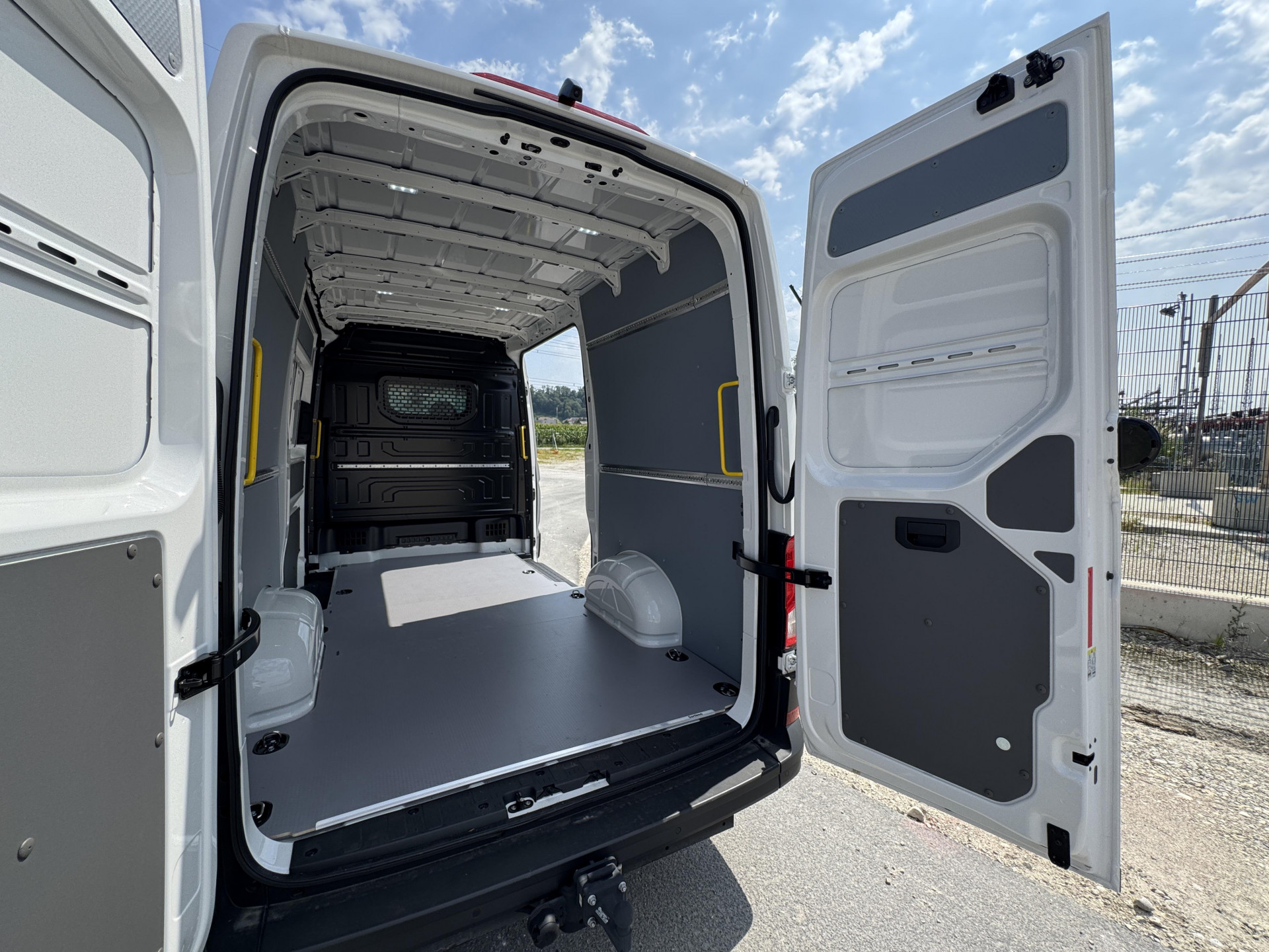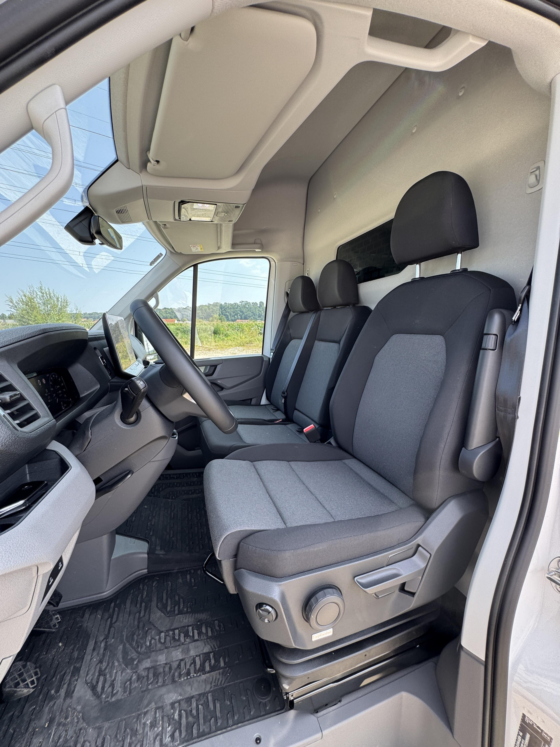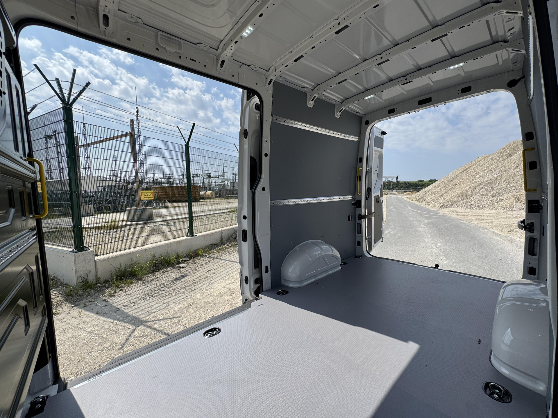 Der Crafter L3H3 kommt mit langem Radstand und Hochdach. In der Praxis bedeutet das: massig Raum für Pakete, Werkzeug, Regalsysteme oder einen kompletten Fahrzeugeinbau. Die Stehhöhe im Laderaum ist üppig, die Karosserie bleibt trotzdem im 3,5-Tonnen-Rahmen.