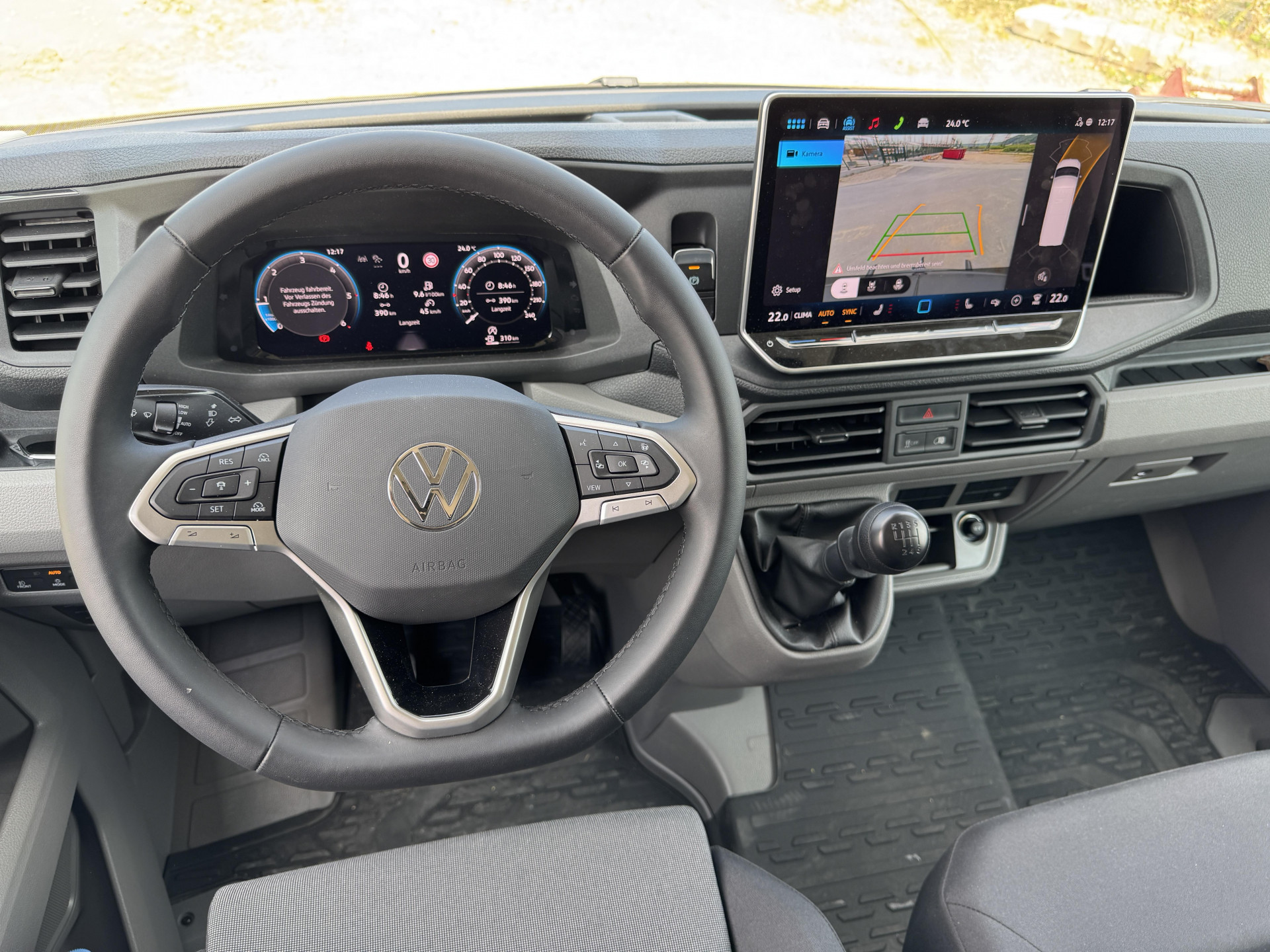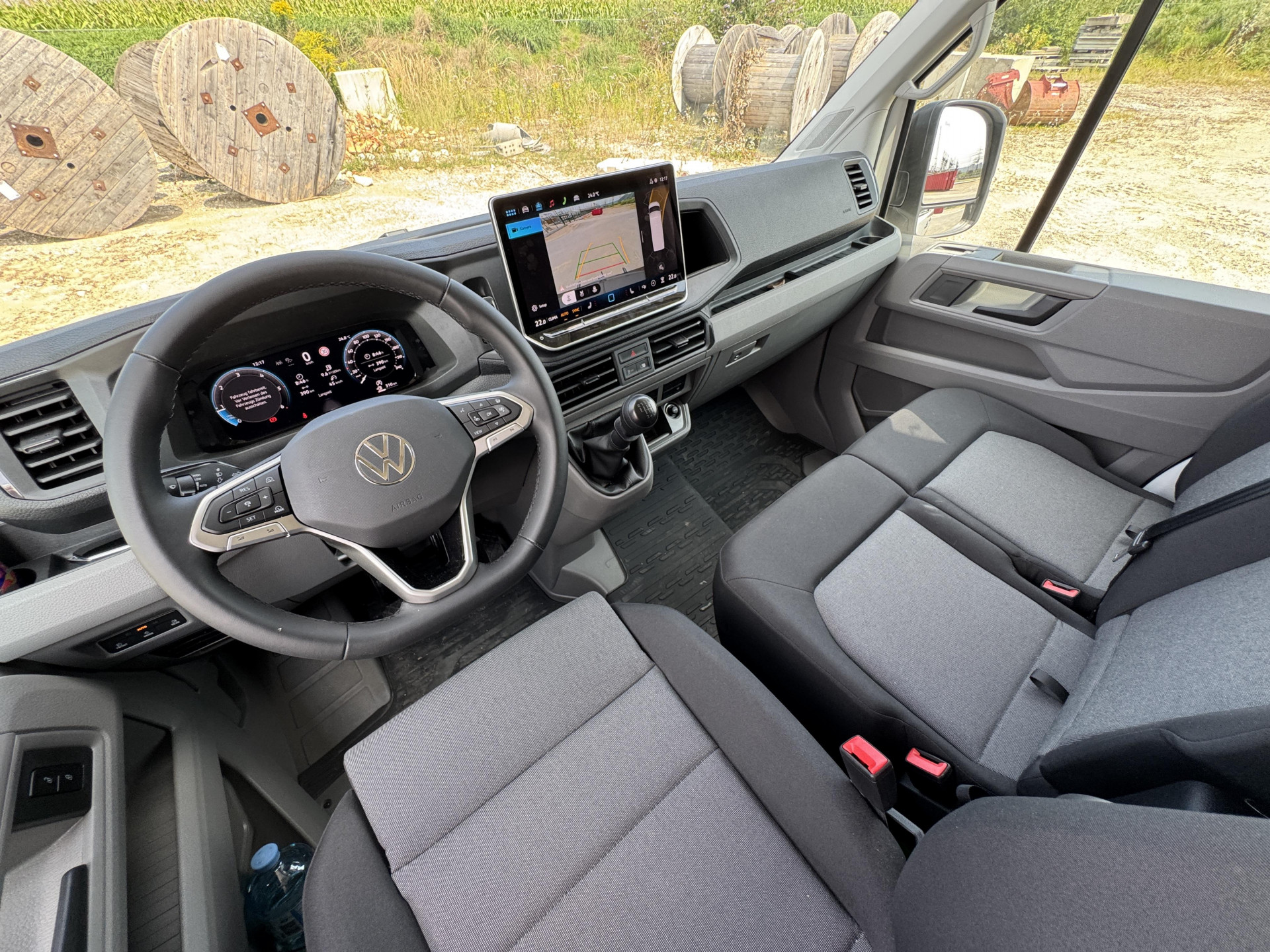 Spätestens im Cockpit merkt man, wie weit sich moderne Transporter vom spartanischen Blechkasten vergangener Zeiten entfernt haben. Der Crafter bietet ein aufgeräumtes, ergonomisches Armaturenbrett, reichlich und vor allem klug gewählte und ausgeführte Ablagen, USB-Anschlüsse und auf Wunsch ein volldigitales Cockpit. Hinzu kommt eine ganze Batterie an Assistenzsystemen: Front Assist, Spurhalteassistent, Verkehrszeichenerkennung, Müdigkeitswarnung, ParkPilot vorne und hinten – vieles, was im Pkw längst üblich ist, wandert hier in die Nutzfahrzeugwelt.