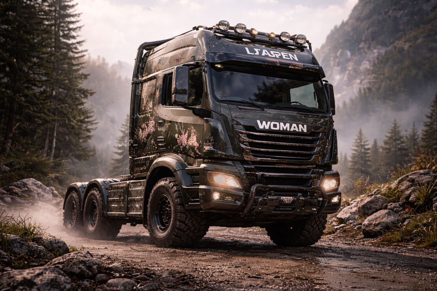 Zum Start der Europa-Offensive kündigt WOMAN Trucks außerdem ein elektrisches Sondermodell an: „Extra Tough E L’Aspen“. Während die Standardmodelle mit sanften Farben und floralen Elementen spielen, setzt diese Variante auf eine deutlich härtere Designsprache: dunkle Farbtöne, massive Proportionen und eine betont robuste Optik. Damit will man zeigen, dass Design, Elektromorbidität und Leistungsfähigkeit kein Widerspruch sein müssen.